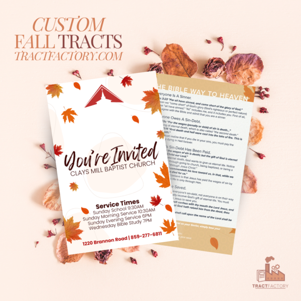 These customizable tracts are simple and beautiful. They are perfect for the fall season for any church or specific fall event.